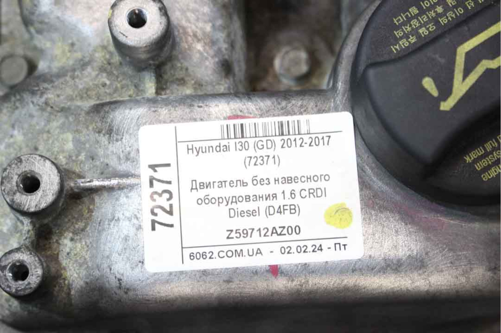 Двигатель без навесного оборудования 1.6 CRDI Diesel (D4FB) Hyundai I30 (GD) 2012-2017 Z59712AZ00 (72371)