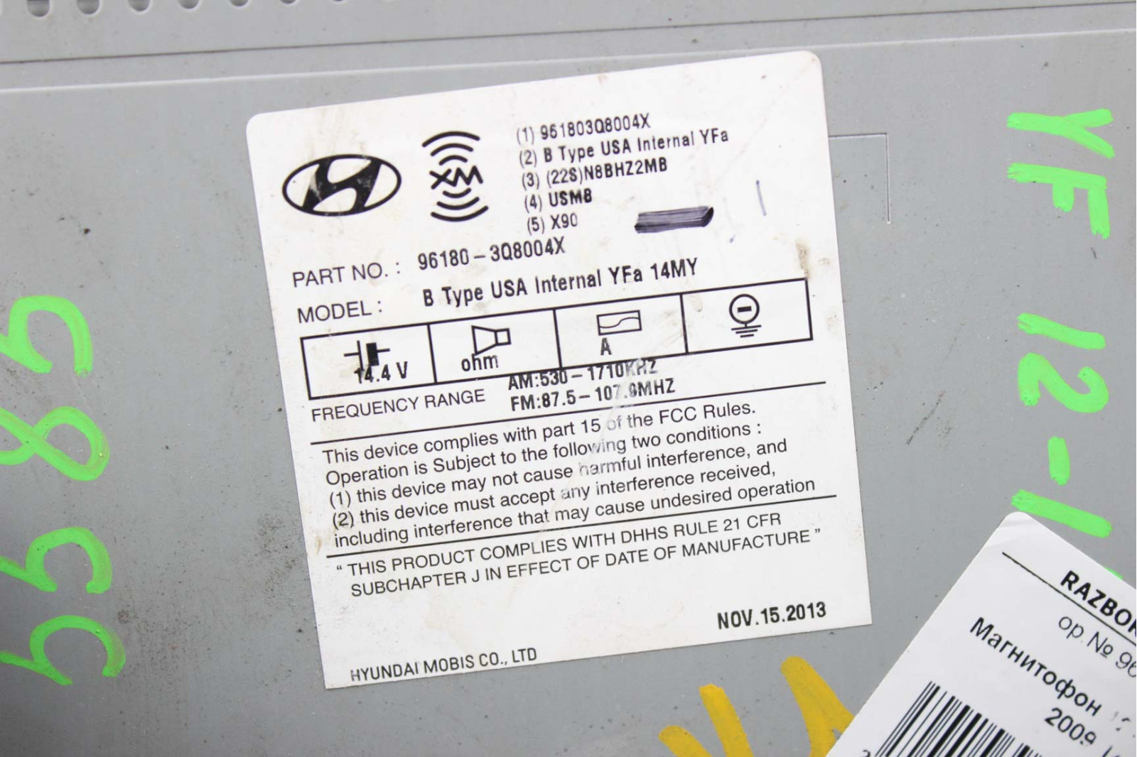 Магнитофон 12-14 Hyundai Sonata (YF) 2009-2014 USA (961803Q8004X) в хорошем рабочем состоянии. Покупая запчасти с нашей разборки машин марки HYUNDAI Вы экономите свои деньги, нервы и время.