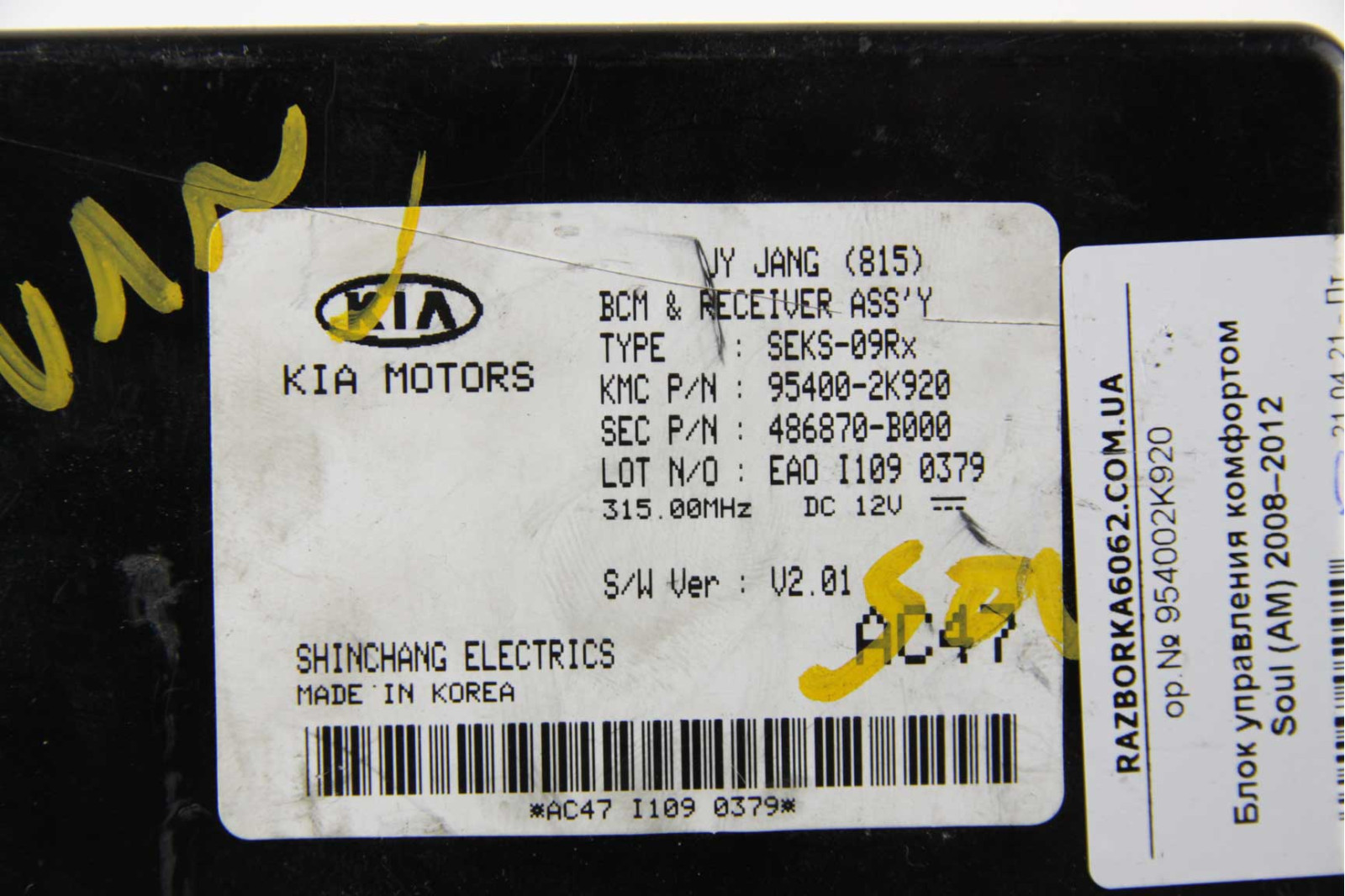 Блок управления комфортом Kia Soul (AM) 2008–2013 (954002K920) в хорошем рабочем состоянии. Покупая запчасти с нашей разборки машин марки KIA Вы экономите свои деньги, нервы и время.