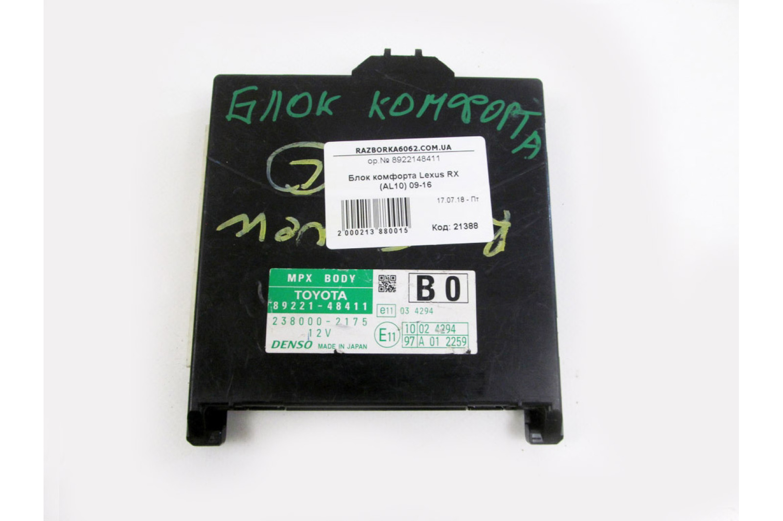Блок комфорта BCM Lexus RX (AL10) 2009-2015 (8922148411) в хорошем рабочем состоянии. Покупая запчасти с нашей разборки машин марки LEXUS Вы экономите свои деньги, нервы и время.