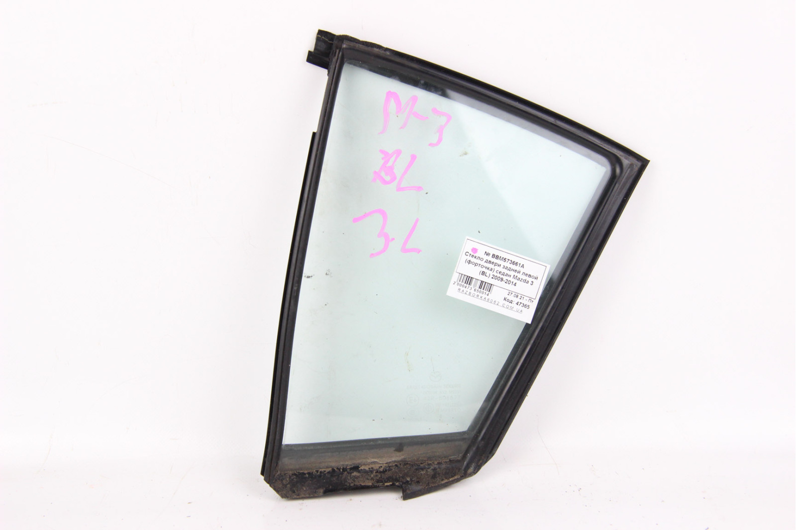 Стекло двери задней левой (форточка) седан Mazda 3 (BL) 2009-2014 BBM573661A (47365)