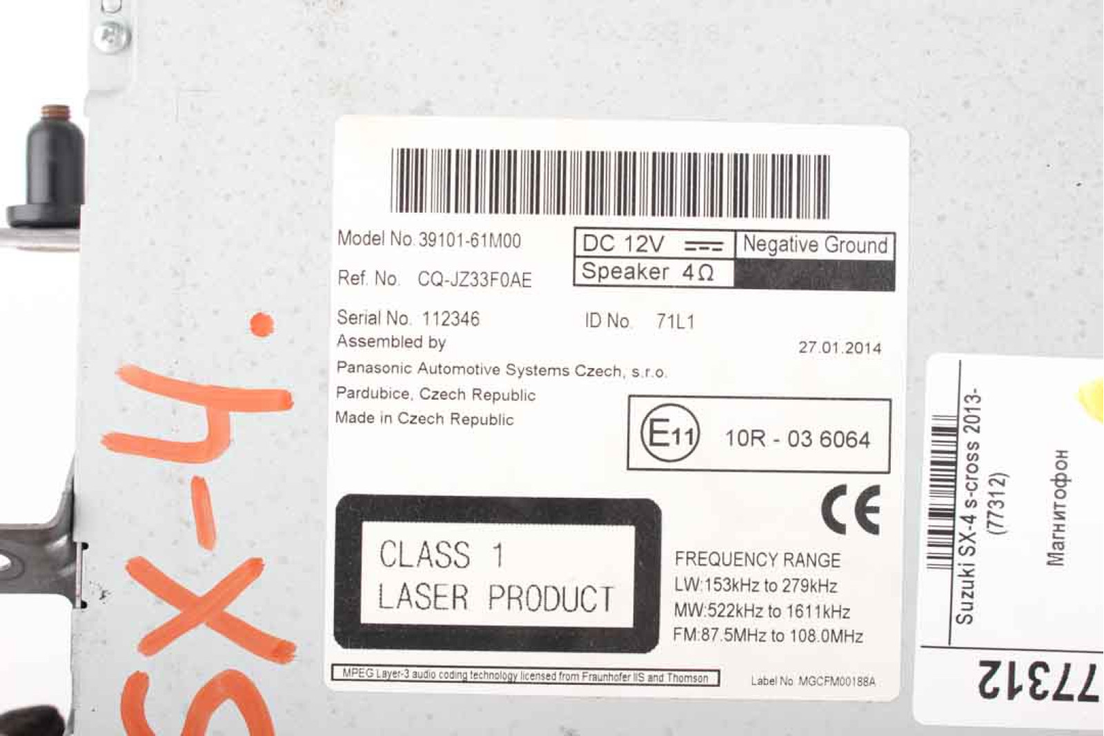 Магнитофон Suzuki SX-4 s-cross 2013- (3910161M00) в хорошем рабочем состоянии. Покупая запчасти с нашей разборки машин марки SUZUKI Вы экономите свои деньги, нервы и время.