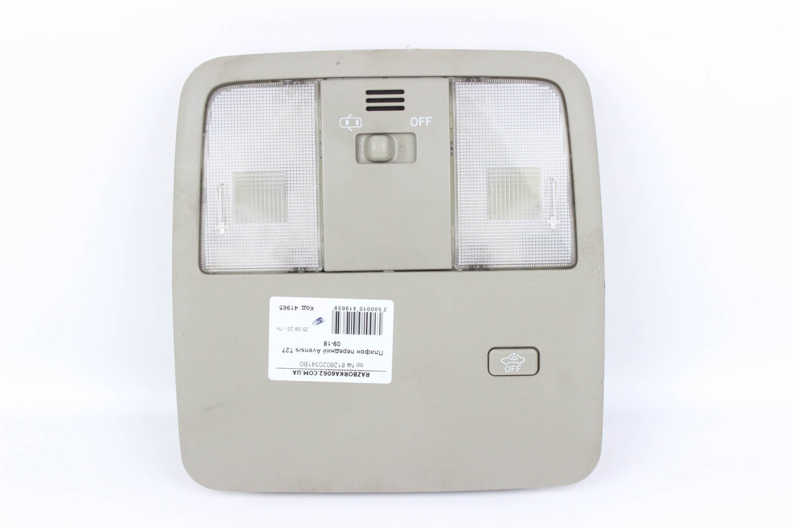 Плафон салона передний Toyota Avensis T27 (T270) 2009-2018 (8126020341B0) в хорошем рабочем состоянии. Покупая запчасти с нашей разборки машин марки TOYOTA Вы экономите свои деньги, нервы и время.