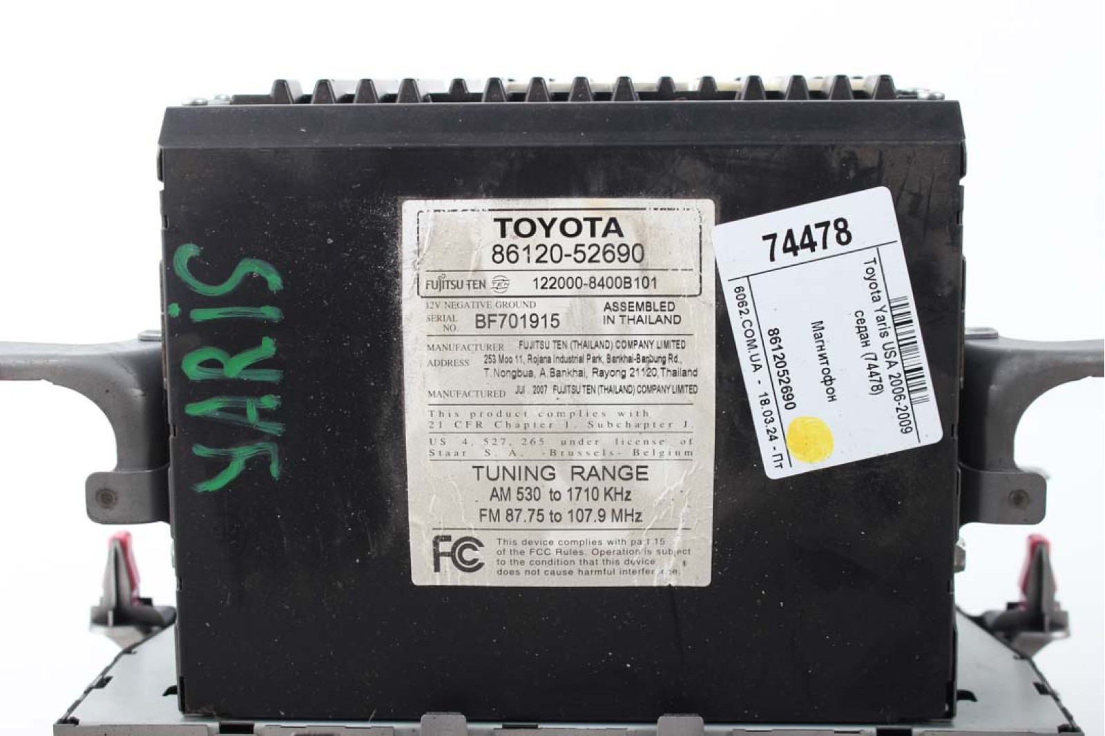 Магнитофон Toyota Yaris USA 2006-2009 седан (8612052690) в хорошем рабочем состоянии. Покупая запчасти с нашей разборки машин марки TOYOTA Вы экономите свои деньги, нервы и время.