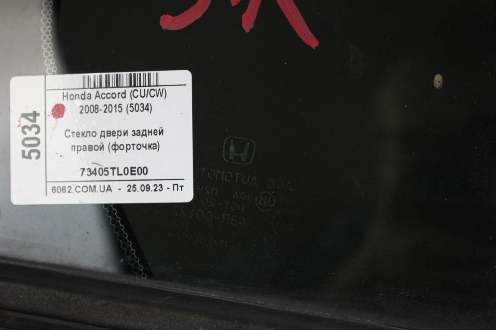 Скло двері задньої правої (кватирка) Honda Accord (CU/CW) 2008-2015 73405TL0E00 (5034)