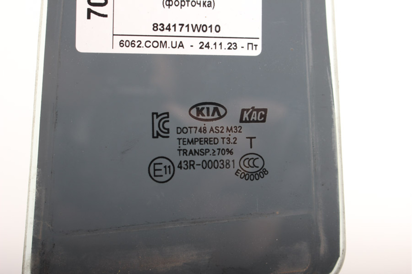 Скло двері задньої лівої (кватирка) Kia Rio (QB/UB) 2011-2017 834171W010 (70466)