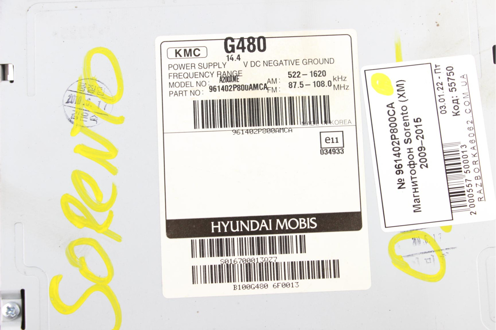 Магнітофон Kia Sorento (XM) 2009–2015 961402P800CA (55750)