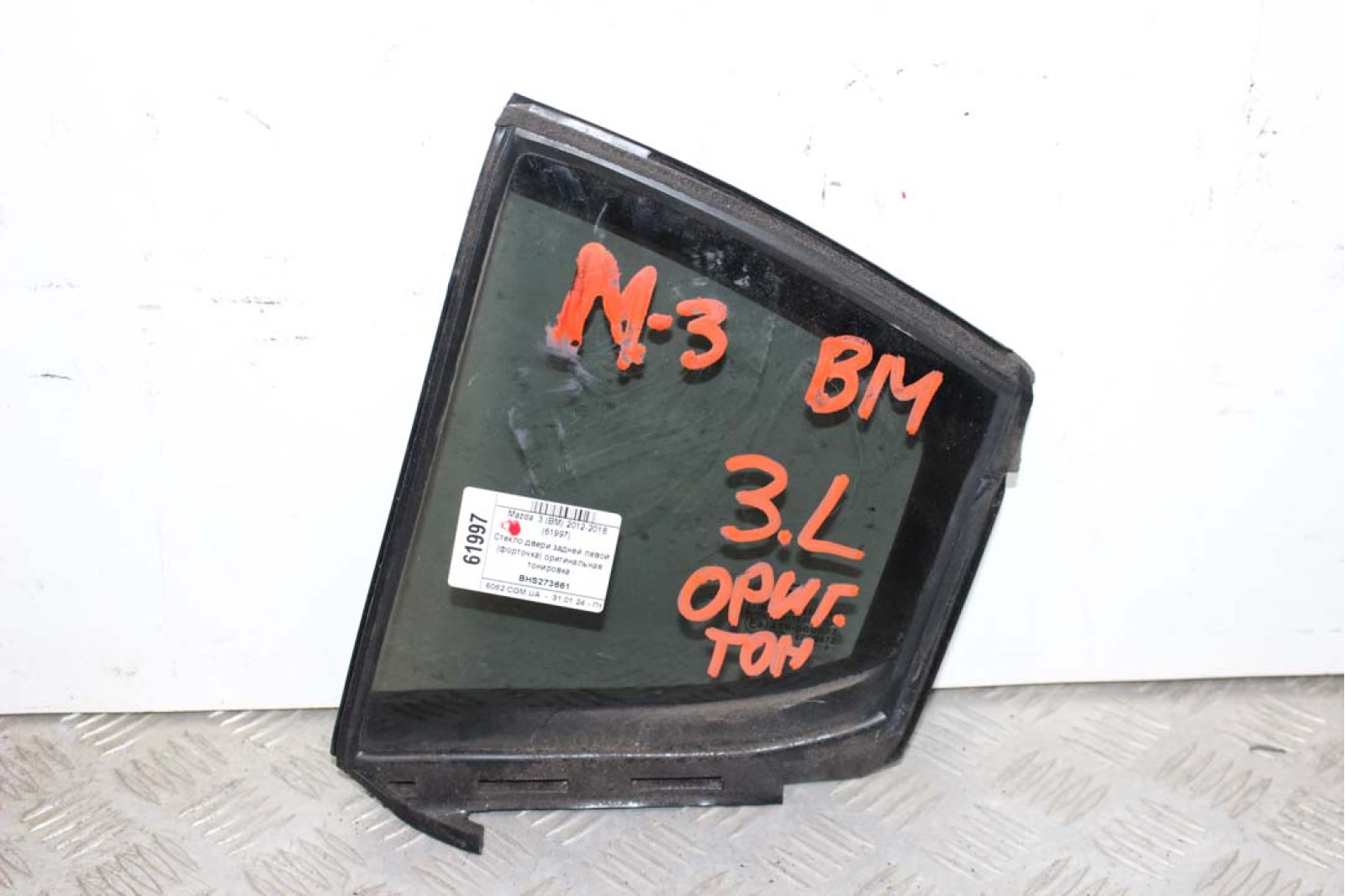 Скло двері задньої лівої (кватирка) оригінальне тонування Mazda 3 (BM) 2012-2018 BHS273661 (61997) Saint Gobain Sekurit