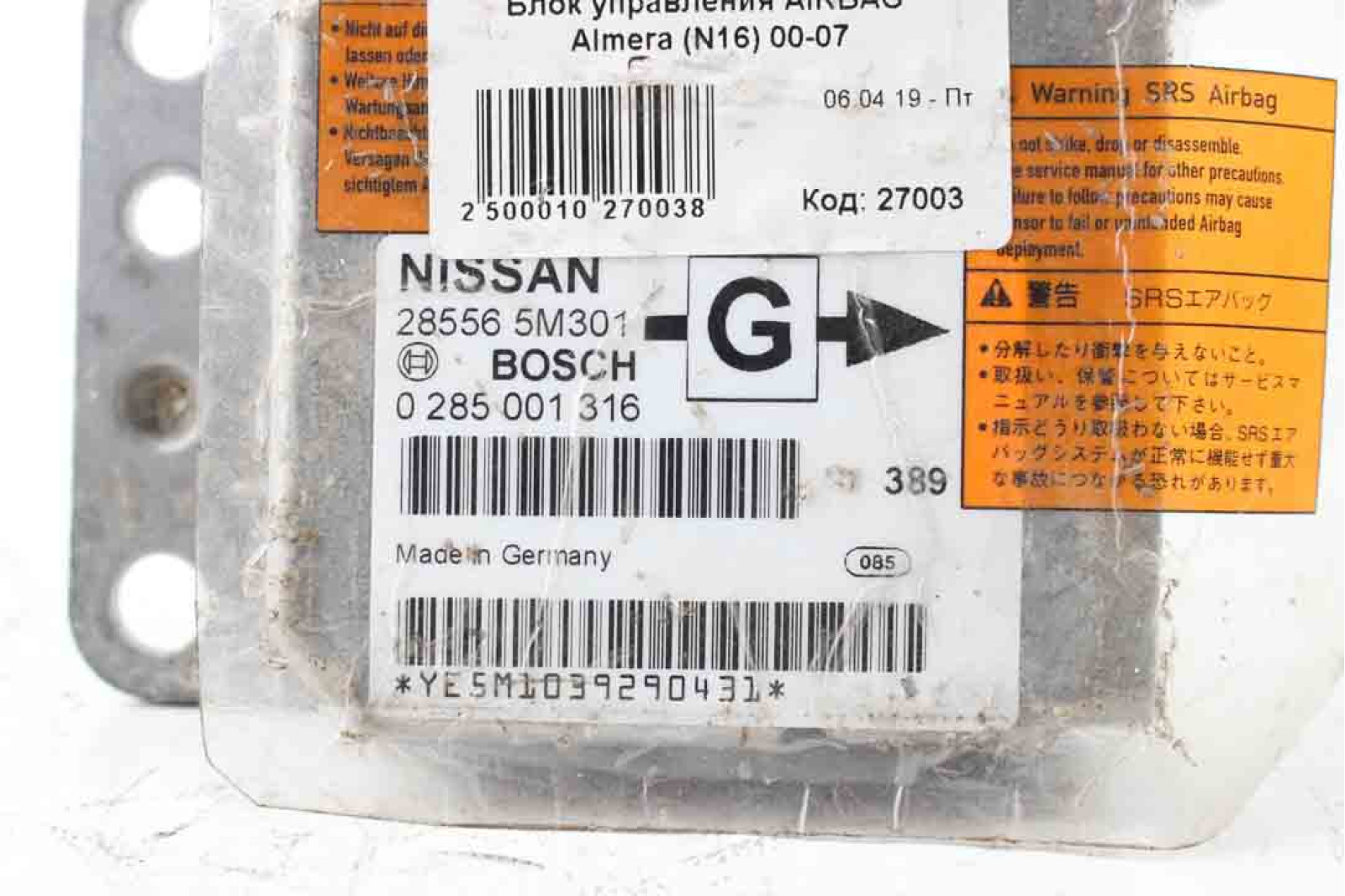 Блок керування AIRBAG Nissan Almera (N16) 2000-2006 285565M301 (27003)