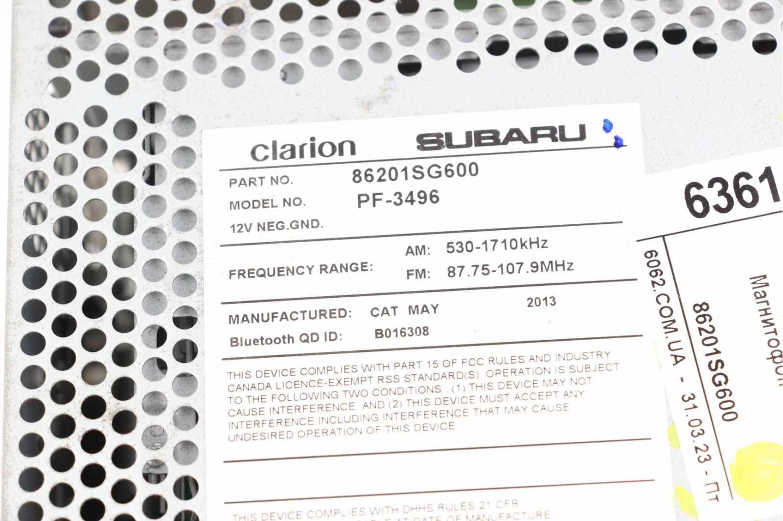 Магнітофон USA Subaru Forester (SJ) 2012-2018 86201SG600 (63611)