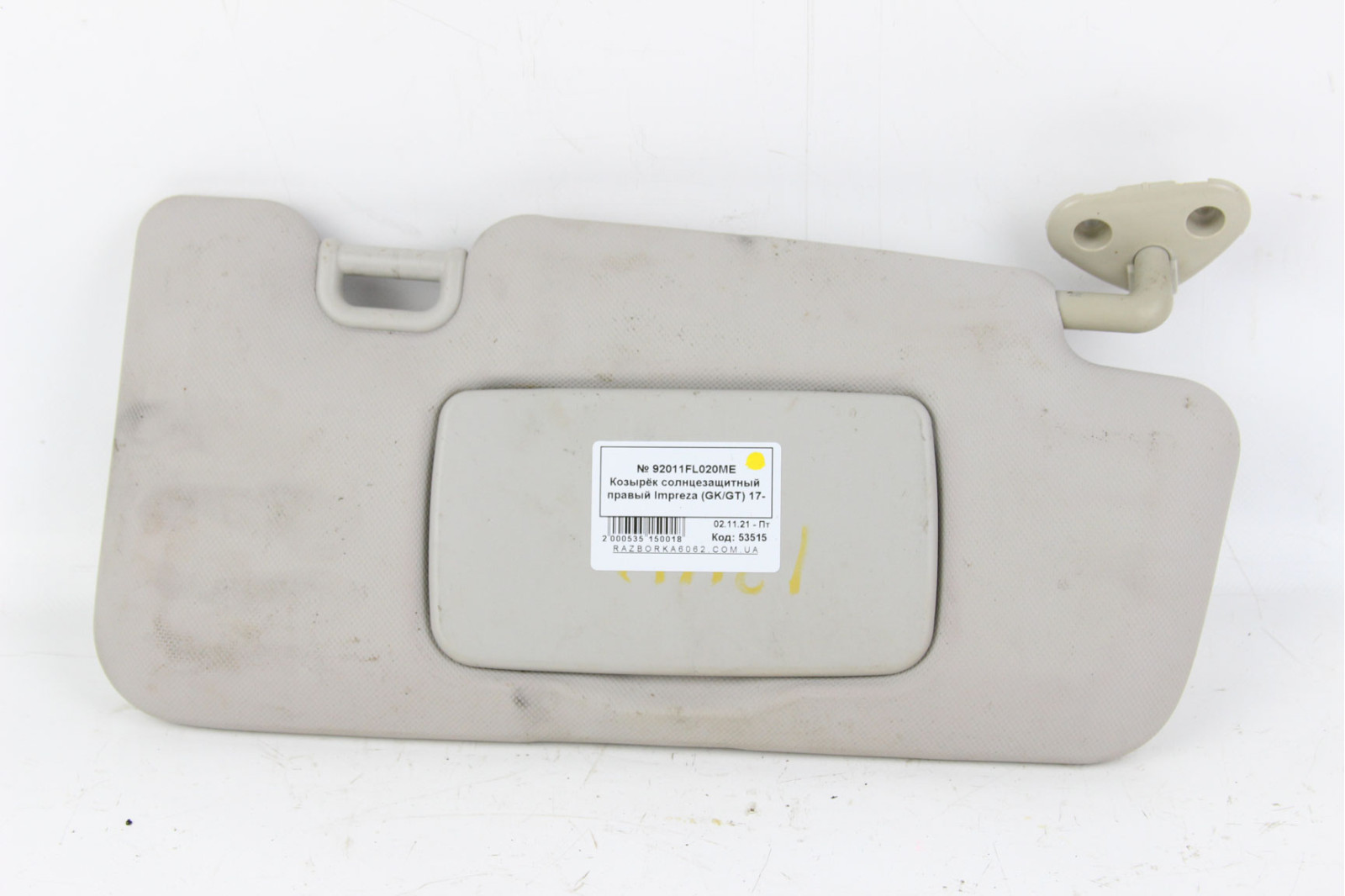 Козирок сонцезахисний правий Subaru Impreza (GK/GT) 17- (92011FL020ME) в хорошому робочому стані. Купуючи запчастини з нашої розборці машин марки SUBARU Ви заощаджуєте свої гроші, нерви та час.