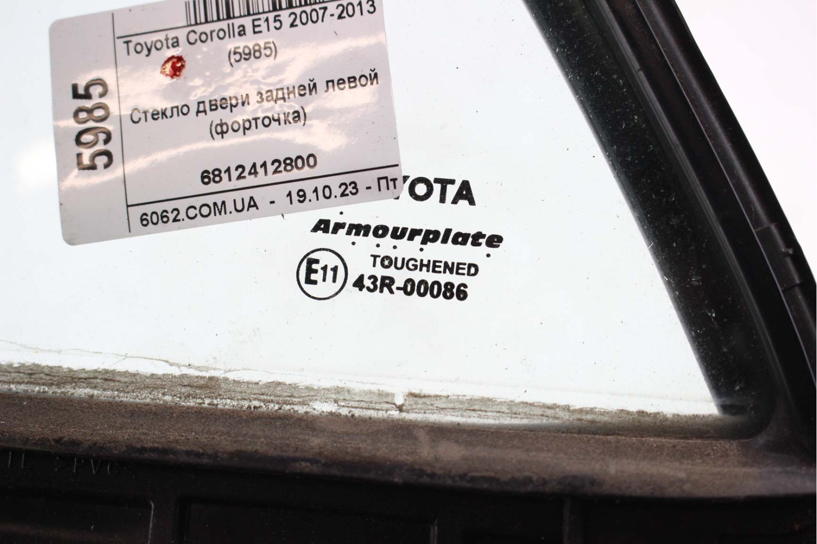 Скло двері задньої лівої (кватирка) Toyota Corolla E15 (E150) 2007-2013 6812412800 (5985)