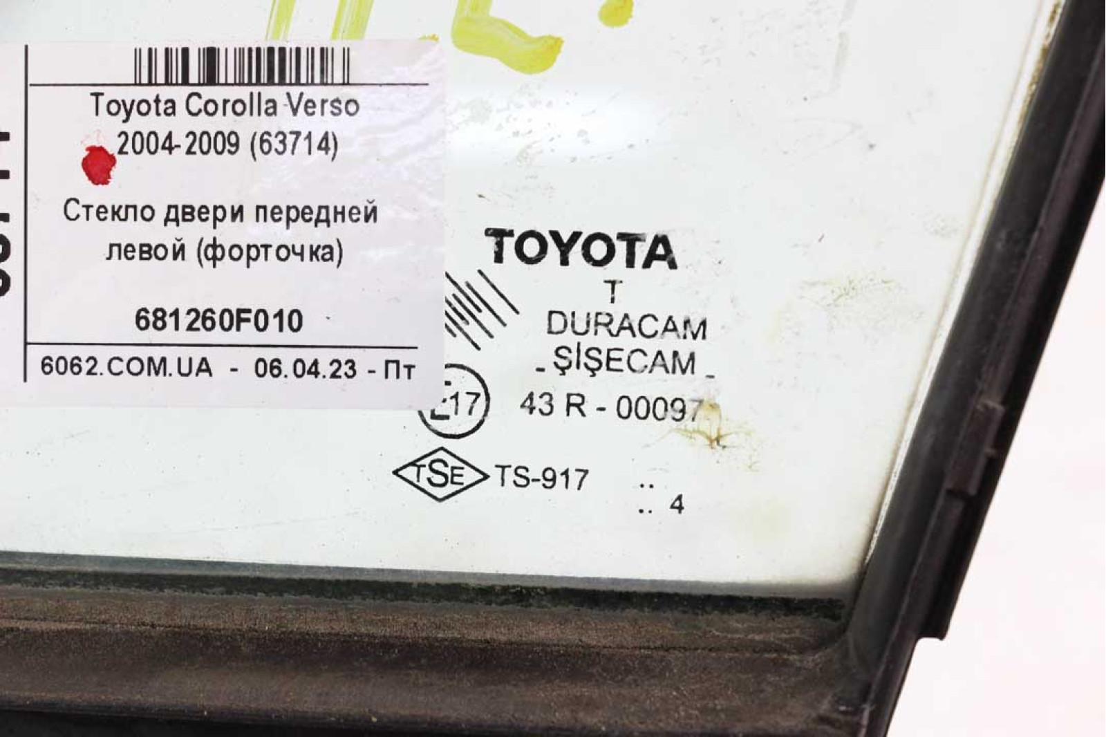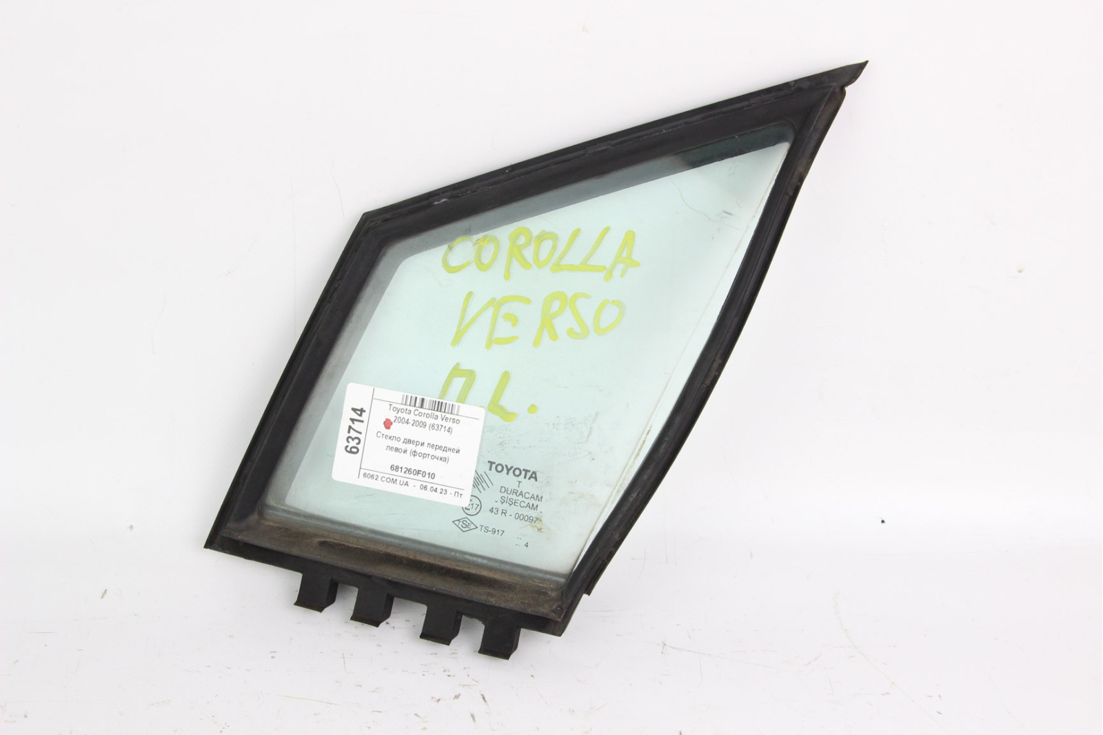 Скло дверей передньої лівої (кватирка) Toyota Corolla Verso 2004-2009 681260F010 (63714)